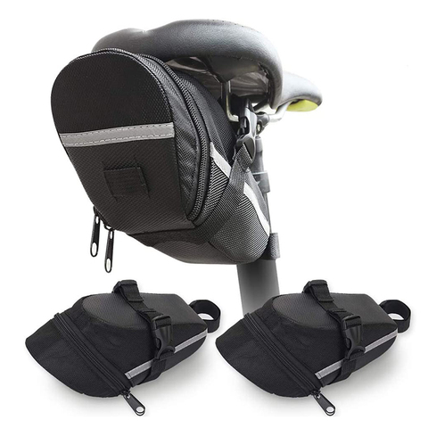 Bolsa de sillín de almacenamiento pequeña negra de 1L, Kit de accesorios de ciclismo reflectantes con bolsa trasera de asiento para almacenamiento de herramientas para bicicletas